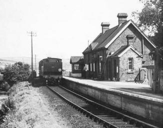 | Keywords: 50 40N 1 14W Horringford railway station, 1955, was an intermediate station situated on the edge of Horringford village on the line from Newport to Sandown incorporated by the Isle of Wight Railway. 1 February 1875 Opened. 6 February 1956 Closed. |