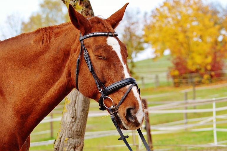 Keywords: horse animal ride reiterhof brown coupling meadow leaves autumn colorful