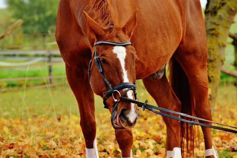 Keywords: horse animal ride reiterhof brown coupling meadow leaves autumn colorful