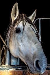 Keywords: horse block animal tame good docile white rump stirrup saddle eyes horseshoe crin ears snout horse riding