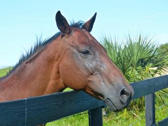 Keywords: horse brown horse horse profile mare alpha mare pasture fence equine bay horse animal country