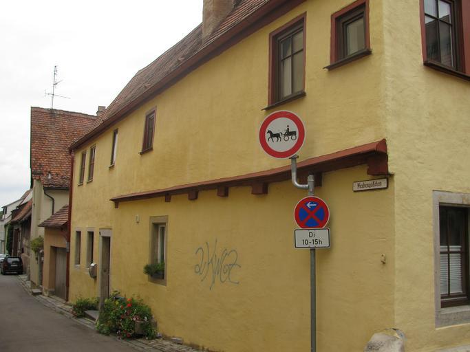 | Keywords: Horse carriage prohibition sign - Rothenburg ob der Tauber.JPG  en Horse carriage entrance forbidden sign Rothenburg ob der Tauber Bavaria Germany own Prokurator11 2012-08-31 Krebengäßchen 15 Rothenburg ob der Tauber Horse rider entrance forbidden signs Prohibitory road signs Road signs in Bavaria Cc-zero  |