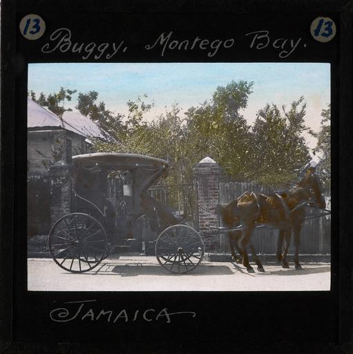 | Keywords: Horse drawn carraige, Montego Bay, Jamaica, early 20th century (imp-cswc-GB-237-CSWC47-LS12-013).jpg en <br> Horse drawn carraige Montego Bay Jamaica early 20th century Photograph of a Jamaican 'Buggy' in Montego Bay The carriage is drawn by a single horse and is pictured sitting outside a stone house ; The Jamaican Buggy or horse drawn carriage would have been the traditional mode of transport for missionaries prior to the car The buggy was light and could be used when travelling up steep hills but could also be a dangerous way to travel and missionary records record cases of fatalities in such vehicles Photographer Unknown Filename imp-cswc-GB-237-CSWC47-LS12-013 tif Coverage date after 1900 Part of collection International Mission Photography Archive ca 1860-ca 1960 Type images Part of subcollection Photographs from the Centre for the Study of World Christianity University of Edinburgh U K ca 1900-ca 1940s Repository name Centre for the Study of World Christianity Archival file impaunpub_Volume7/1346 url Geographic subject city or populated place Montego Bay Repository address The University of Edinburgh School of Divinity New College Mound Place Edinburgh EH1 2LX United Kingdom Geographic subject country Jamaica Format aacr2 1 lantern slide 8 x 8 cm Geographic subject continent North and Central America Rights Contact the repository for details Part of series The Jamaican Church in the Bush LS12 Repository email divinity-CSWC ed ac uk Subject lcsh Keyword Transportation; Missionaries Date created after 1900 Publisher of the digital version University of Southern California Libraries Subject aat genre external views Format aat lantern slides Legacy record ID impa-m68283 Access conditions http //www ed ac uk/schools-departments/divinity/research/centres/world-christianity/collections-resources File GB 237 CSWC47/LS12/13 after 1900 author http //digitallibrary usc edu/cdm/ref/collection/p15799coll123/id/64467 PD-old-70-1923 Magic lantern images Images from USC Digital Library uploaded by Fæ International Mission Photography Archive ca 1860-ca 1960 Montego Bay |