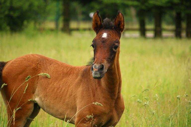 Keywords: horse foal suckling brown mold thoroughbred arabian pasture meadow grass
