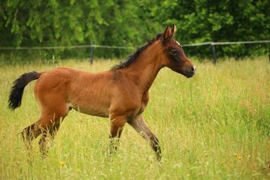 Keywords: horse foal suckling brown mold thoroughbred arabian pasture meadow grass
