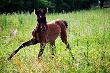 Keywords: horse foal thoroughbred arabian brown mold pasture gallop
