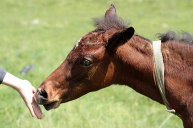 Keywords: horse food hand contact brown
