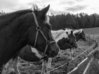 Keywords: horse forest edge of the woods animal fence coupling ride
