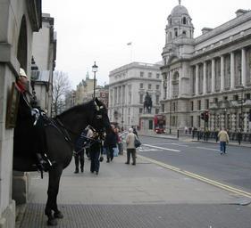 Keywords: Horse guard Whitehall London.jpg London own own photo 20 d'Févri 2008 Man vyi Own work all rights released Public domain Whitehall Horse Guards Blues and Royals Old War Office Building