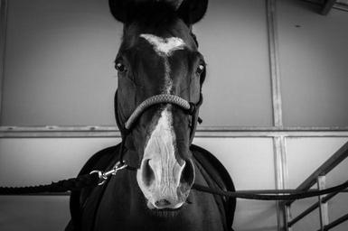 Keywords: horse monochromatic stallion mammal animal farm equestrian livestock black-and-white nature gray white black equine outdoor head portrait dapple-grey gallop