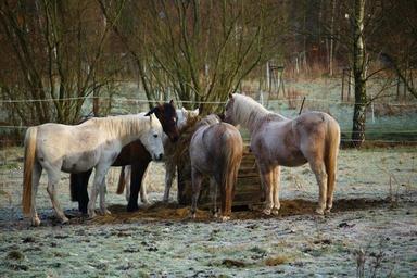 Keywords: horse pasture winter hay feeding frost mold thoroughbred arabian flock