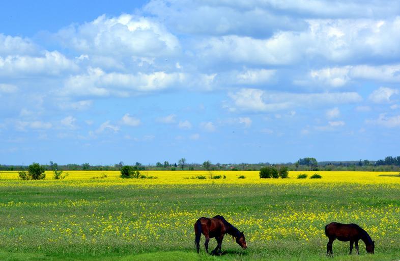 Keywords: horse pet plain flowers nature yellow sky wildflowers flower