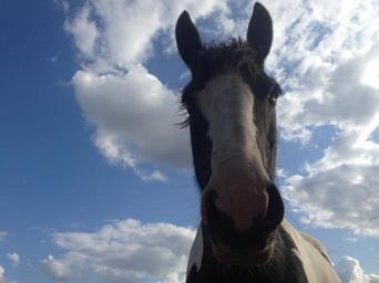 Keywords: horse piebald paint cob mare sky clouds equestrian equine pony