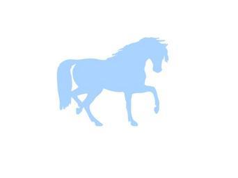 Keywords: horse walking dancing riderless animal moving silhouette tail mane light blue