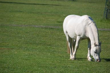 Keywords: horse white mane white horse pasture animal stallion eat meadow