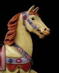 Keywords: horse wooden carousel retro nostalgic merry-go-round vintage colorful fun childhood