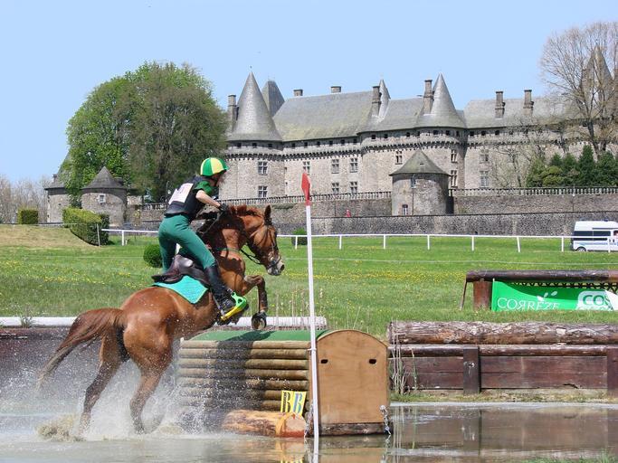 Keywords: horseback riding horse eventing cross castle pompadour obstacle ford river sport animals jump jumper competition contest france