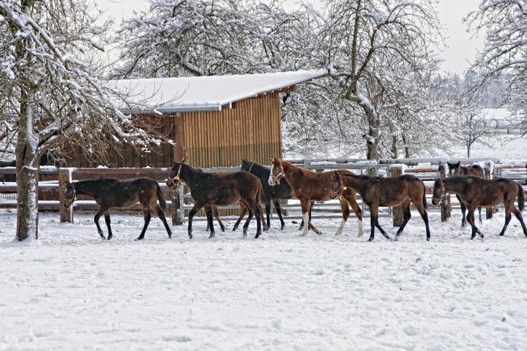 Keywords: horses animals horse group winter snow landscape