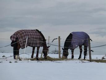 Keywords: horses animals mammals pasture winter cold ceiling protection snow