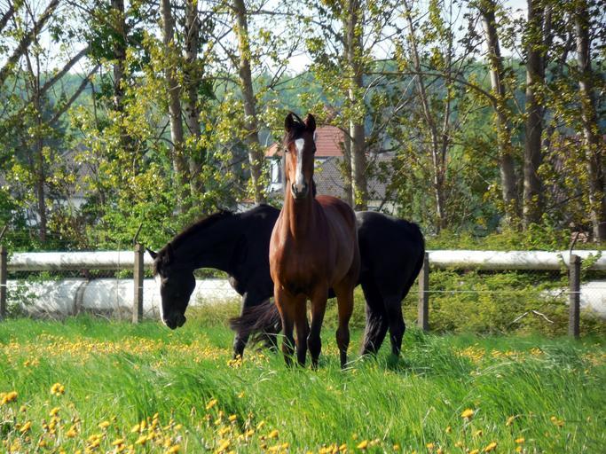 Keywords: horses coupling paddock graceful mane ride graze pasture meadow animals horse head