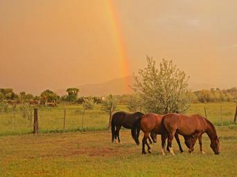 Keywords: horses equine rainbow nature clouds beautiful colorful sky storm landscape summer color green grass mare stallion scene country meadow animal beauty outdoors rural pasture