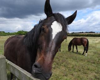 Keywords: horses fence pasture nature outdoors portrait domestic ranch animal livestock herd