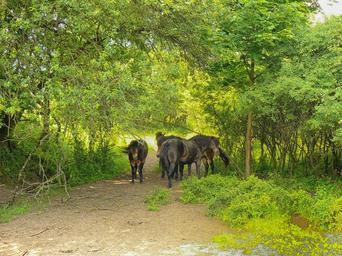 Keywords: horses forest trees germany landscape scenic summer spring trail path hdr