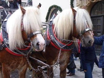 Keywords: horses horse drawn carriage blond mane old stagecoach horses