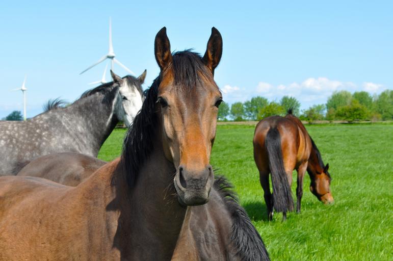 Keywords: horses pasture horse head brown graze paddock coupling