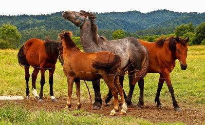 Keywords: horses pasture land grass meadow animal pony race horse horse tail brown horse bay horse gray horse siwek a group of horses the horse hooves village stallion mare riding recreation
