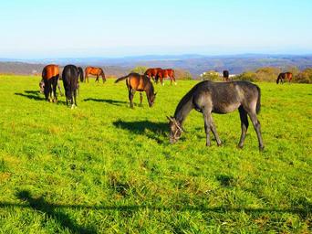 Keywords: horses pasture pasture land grass green agriculture idyll