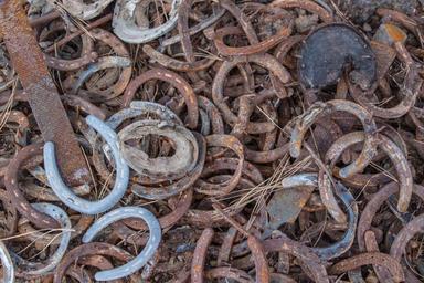 Keywords: horseshoes horse lucky charm pile old rusty memory rustic symbol good luck symbol of good luck collection iron metal discarded symbol of happiness symbolism