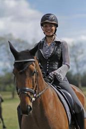 Keywords: horsewoman woman horse ride dressage helm cheerful sport equestrian