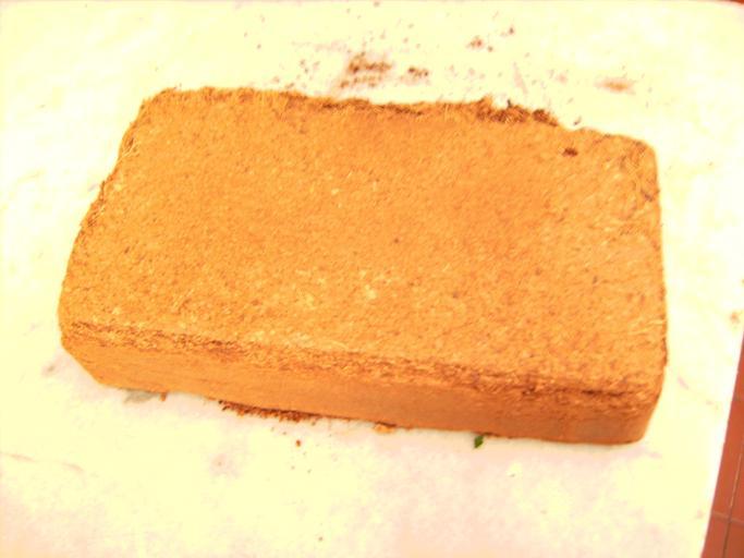 Keywords: Horticulture coir1310.JPG en Coir brick Coconut fiber for horticulture ca Maó de fibra de coco per a horticultura i jardineria own Victor M Vicente Selvas 03 d'agost de 2010 Barcelona Coconut fibres