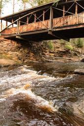 | Keywords: amnicon falls amniconfalls places public lands publiclands state park statepark united states unitedstates wi wis. wis wisc. wisc wisconsin outdoor The 55-foot long bridge that spans the river at the Lower Falls of the Amnicon River is historically significant due both to its age and unusual construction. It is called a Horton or bowstring bridge. It is not known how many bowstring bridges of Horton's design were built or when the bridge that now serves park visitors was constructed. Today only five other Horton bridges are known. They are also owned by the Department of Natural Resources at the Van Loon Wildlife Area in La Crosse County. Photo: Ben Pierson / DNR The 55-foot long bridge that spans the river at the Lower Falls of the Amnicon River is historically significant due both to its age and unusual construction. It is called a Horton or bowstring bridge. It is not known how many bowstring bridges of Horton's design were built or when the bridge that now serves park visitors was constructed. Today only five other Horton bridges are known. They are also owned by the Department of Natural Resources at the Van Loon Wildlife Area in La Crosse County. Photo: Ben Pierson / DNR |