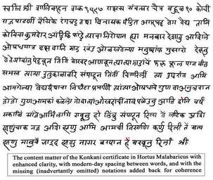| Keywords: HortusCertificate.jpg The photo had been taken from a botanical document in dutch called Hortus Malabaricus compile 325 years ago by Hendrik van Rheede It is not under copyright 2011-02-26 en wikipedia SreeBot http //sites google com/site/saratchandrashenoi/home/hortus Hortus Malabaricus 1 Hendrik van Rheede<br /> Uploaded by ImperiumCaelestis at en wikipedia Expired Copyright other versions NA PD-old-100 Original upload log page en wikipedia HortusCertificate jpg Upload date User Bytes Dimensions Comment 2011-02-26 19 33 UTC ImperiumCaelestis 129383 bytes 800×677 <small><nowiki> The photo had been taken from a botanical document in dutch called Hortus Malabaricus compile 325 years ago by Hendrik van Rheede It is not under copyright </nowiki></small> Check categories 2011 September 13 en wikipedia Nagar_Barap en wikipedia Kanara_ Canara _Konkani 1 Konkani |
