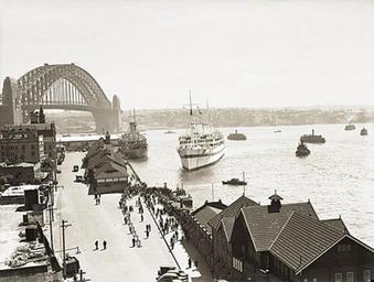 | Keywords: archives state records nsw staterecordsnsw newsouthwales blackandwhite sydney harbour circular quay circularquay sydney harbour bridge sydneyharbourbridge people wanganella bridges hospital world war ii worldwarii ships wharf wharves srnsw:series=9856 outdoor monochrome black and white The hospital ship "Wanganella" berthing at Circular Quay Dated: January 1940 Digital ID: 9856_a017_A017000182 Rights: www.records.nsw.gov.au/about-us/rights-and-permissions We'd love to hear from you if you use our photos. Many other photos in our collection are available to view and browse on our website using Photo Investigator. The hospital ship "Wanganella" berthing at Circular Quay Dated: January 1940 Digital ID: 9856_a017_A017000182 Rights: www.records.nsw.gov.au/about-us/rights-and-permissions We'd love to hear from you if you use our photos. Many other photos in our collection are available to view and browse on our website using Photo Investigator. |