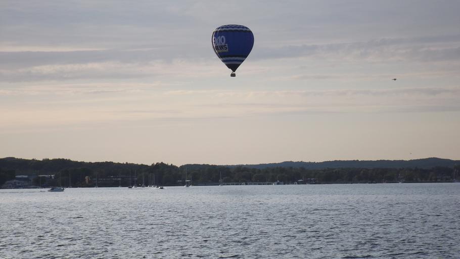 Keywords: hot air balloon lake sky