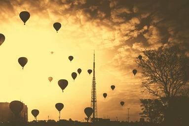 Keywords: hot air balloons silhouette balloon flight adventure sunset bright yellow