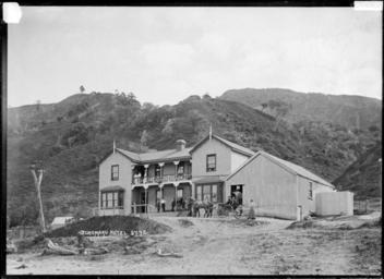 | Keywords: blackandwhite monochrome outdoor architecture building photo border black and white View of the hotel near the foreshore at Tokomaru Bay, East Coast, possibly called the Tokomaru Bay Hotel. Photograph taken by William A Price in early 1900s. A horse and gig are standing near a corrugated iron building to the right of the hotel. Women are watching from the second storey balcony and men are standing on the verandah below. Photograph taken by William A Price in early 1900s. Inscriptions: Inscribed - Photographer's title on negative -bottom left: Tokomaru Hotel. 577C. Quantity: 1 b&w original negative(s). Physical Description: Dry plate glass negative 4.75 x 6.5 inches Hotel at Tokomaru Bay, East Coast. Price, William Archer, 1866-1948 :Collection of post card negatives. Ref: 1/2-000959-F. Alexander Turnbull Library, Wellington, New Zealand. natlib.govt.nz/records/22735191 View of the hotel near the foreshore at Tokomaru Bay, East Coast, possibly called the Tokomaru Bay Hotel. Photograph taken by William A Price in early 1900s. A horse and gig are standing near a corrugated iron building to the right of the hotel. Women are watching from the second storey balcony and men are standing on the verandah below. Photograph taken by William A Price in early 1900s. Inscriptions: Inscribed - Photographer's title on negative -bottom left: Tokomaru Hotel. 577C. Quantity: 1 b&w original negative(s). Physical Description: Dry plate glass negative 4.75 x 6.5 inches Hotel at Tokomaru Bay, East Coast. Price, William Archer, 1866-1948 :Collection of post card negatives. Ref: 1/2-000959-F. Alexander Turnbull Library, Wellington, New Zealand. natlib.govt.nz/records/22735191 |