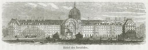 | Keywords: Hôtel des Invalides, 1855.jpg A view of the Hôtel des Invalides a military hospital in Paris Napoléon's tomb is found in the crypt 1855 engraving 3 1 x 10 5 cm Institution Brown University Library object history exhibition history credit line Published in Guide dans les monuments de Paris Paris Paulin et Le Chevalier 1855 accession number 1150469389857554 PD-old Engravings of buildings in Paris Images of Paris from the Brown University Library Guide dans les monuments de Paris Historical images of Les Invalides |