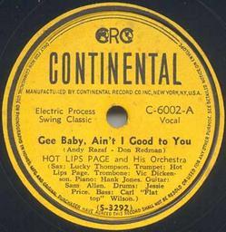 Keywords: Hotlpispagegeebaby.jpg en Hot Lips Page shellack Gee baby Ain't Good for You own Freimut Bahlo 2009-04-11 PD-US-no notice Jazz vocalists from the United States Musicians from the United States 1908 births Jazz trumpeters 1954 deaths Blues musicians Jazz records