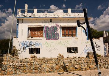 Keywords: house abandonded ruin home city weathered abandoned building graffiti spray paint stones