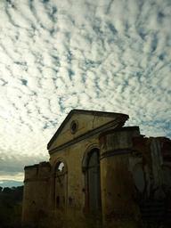 Keywords: house abandoned ruins building uninhabited farmhouse estate landscape sky cloudy old cracks spent