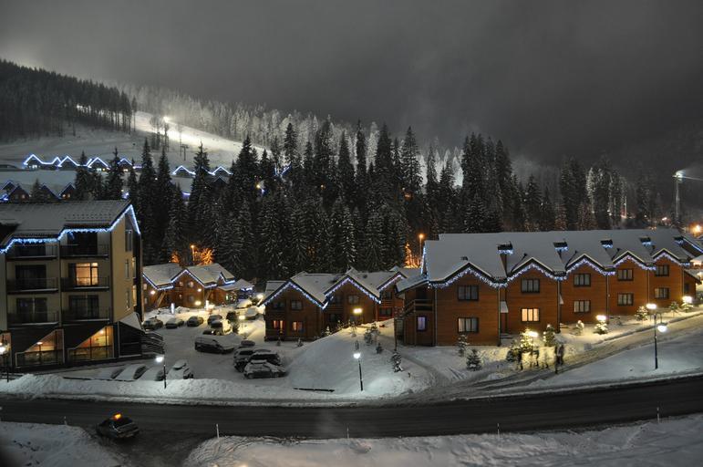 Keywords: house chalet mountains evening nature twilight snow efi pine bor houses hotels