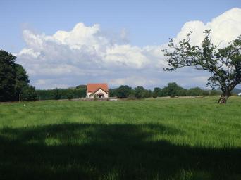 Keywords: house dwelling home estate residence property living lawn yard housing exterior structure design english meadow nature united kingdom contemporary style comfortable