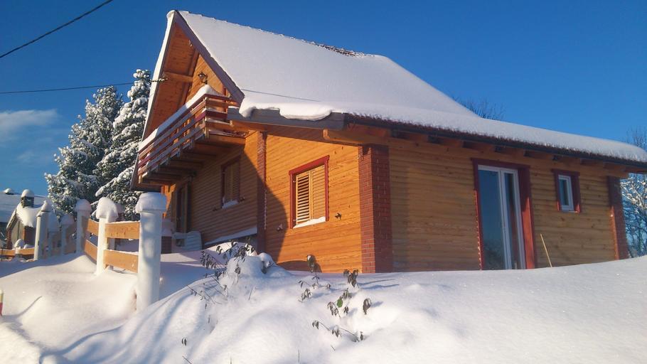 Keywords: house home residential property wood wooden snow snowfall snowclad exterior holiday croatia