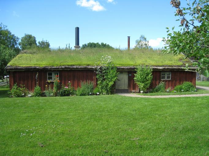 Keywords: house lawn flowers grass roofs sky cloud sweden skara tree plants