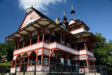 Keywords: house pustevny architecture home sky blue history painted house roof czech republic wooden