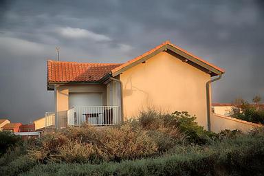 Keywords: house sunrise morning clouds contrast sun seaside colorful sky